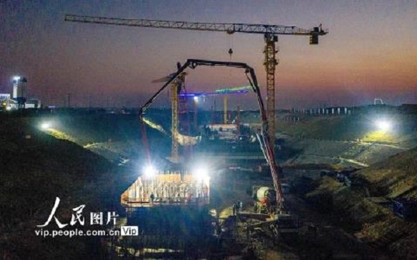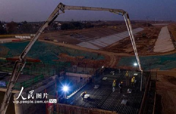 2020年11月15日,引江濟(jì)淮工程安徽省合肥市廬江縣廬城鎮(zhèn)廬江節(jié)制閘施工現(xiàn)場(chǎng),建設(shè)者們正挑燈夜戰(zhàn)加快工程進(jìn)度。