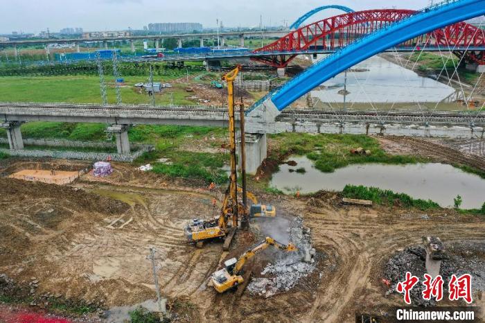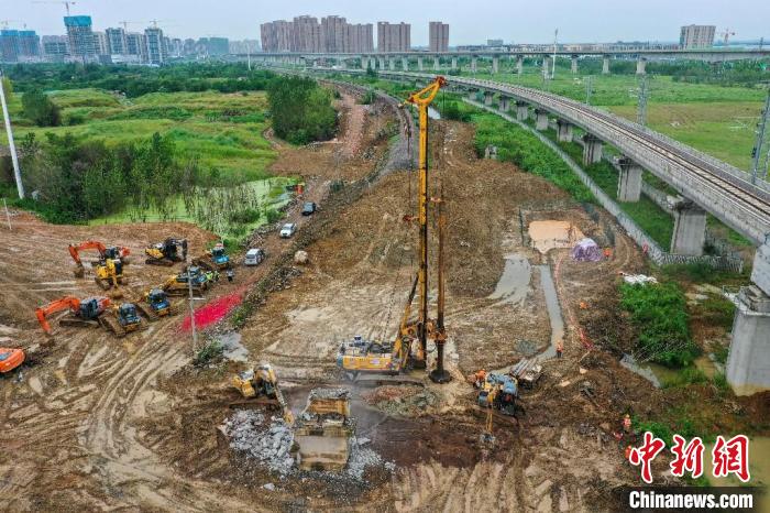 8月14日,引江濟淮工程(安徽段)合(肥)九(江)鐵路改建首根樁基順利開鉆施工。 馬春澧 攝