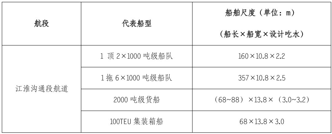 引江濟(jì)淮航道江淮溝通段航道等級(jí)為內(nèi)河Ⅱ級(jí);巢湖湖區(qū)段10.8km,航道尺度3.8×90×550m(水深×底寬×彎曲半徑,下同),其中口門段底寬60m;瓦埠湖湖區(qū)段41.6km,航道尺度為3.7×90×550m;其他航段114.6km,航道尺度為4.0×60×540m。