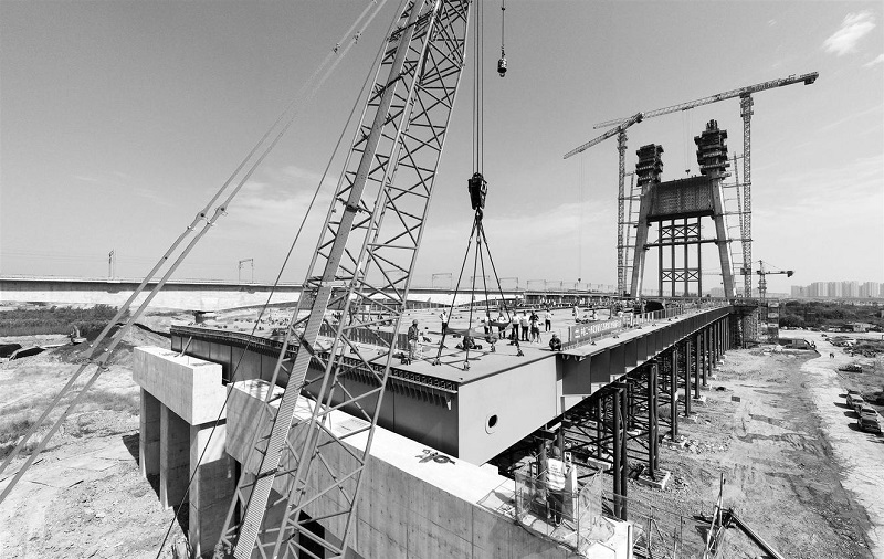 引江濟淮將軍嶺路橋鋼箱梁主梁順利合龍