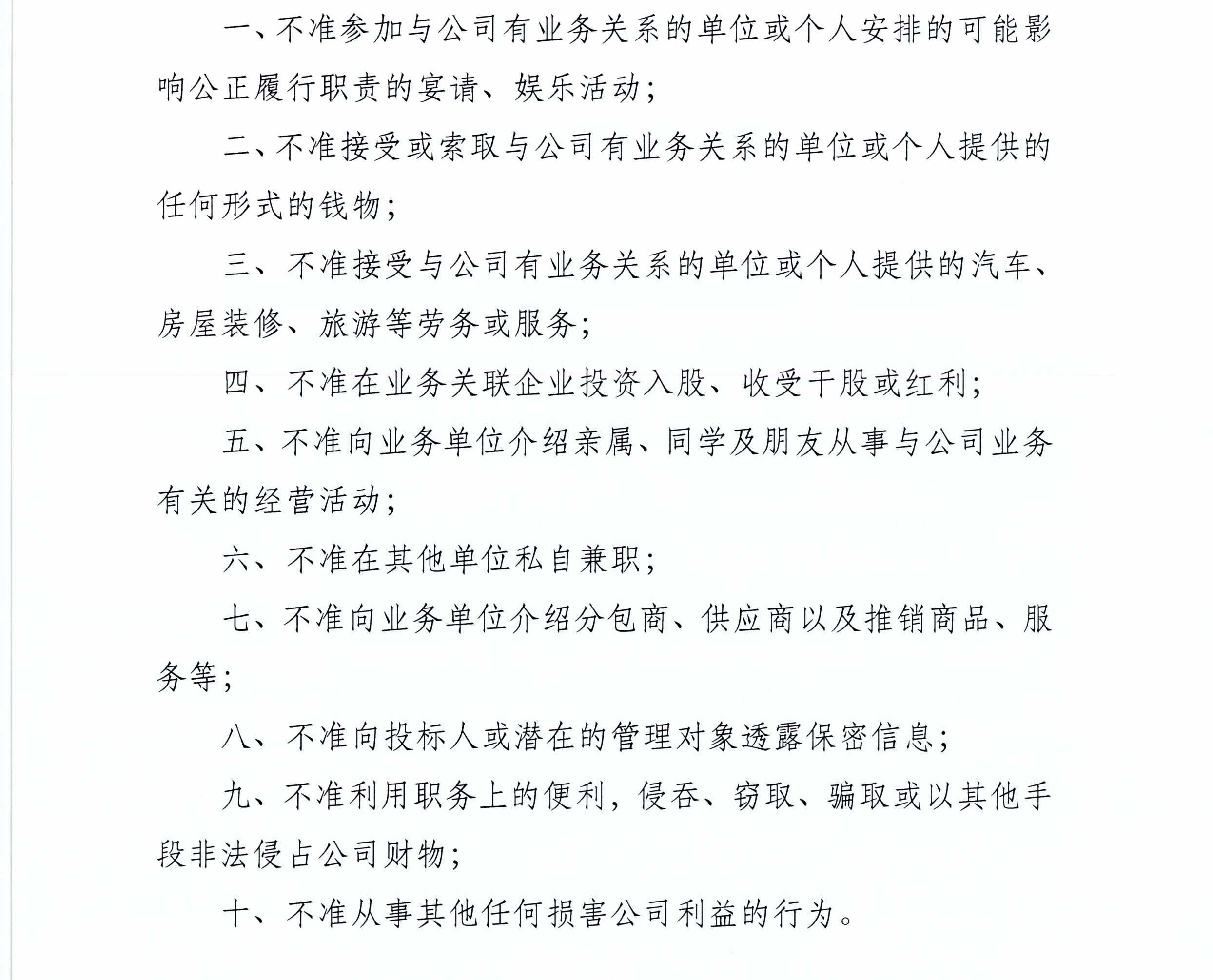 安徽省引江濟(jì)淮集團(tuán)有限公司員工廉潔從業(yè)“十不準(zhǔn)”