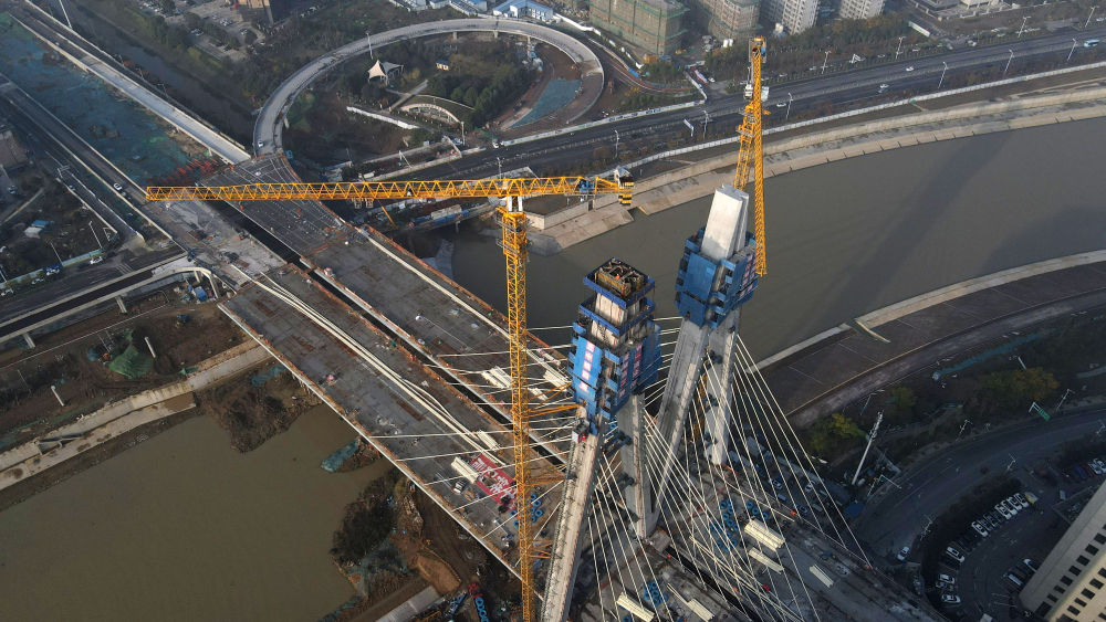 當(dāng)日,由中鐵四局承建的引江濟(jì)淮工程江淮溝通段金寨南路橋主塔封頂。該橋跨越引江濟(jì)淮工程航道,全長635米,設(shè)計為獨塔斜拉橋,此次封頂?shù)闹魉?12米。引江濟(jì)淮工程溝通長江、淮河兩大水系,是我國跨流域、跨省重大戰(zhàn)略性水資源配置和綜合利用工程。