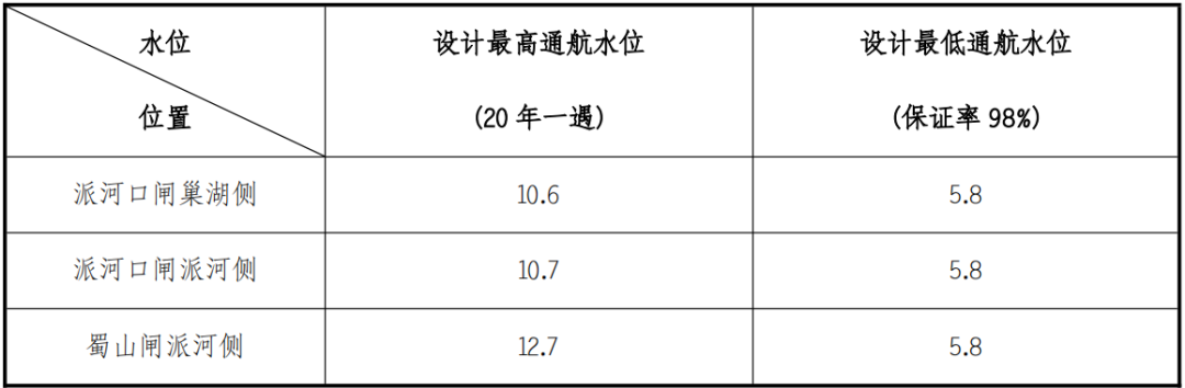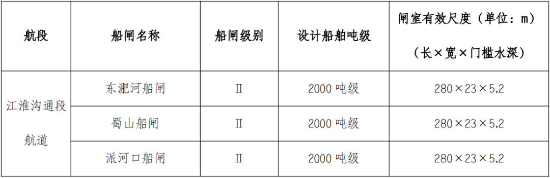 東淝河、蜀山、派河口船閘級(jí)別均為Ⅱ級(jí),設(shè)計(jì)船舶噸級(jí)為2000噸級(jí),閘室有效尺度280×23×5.2m(長(zhǎng)×寬×門檻水深)。