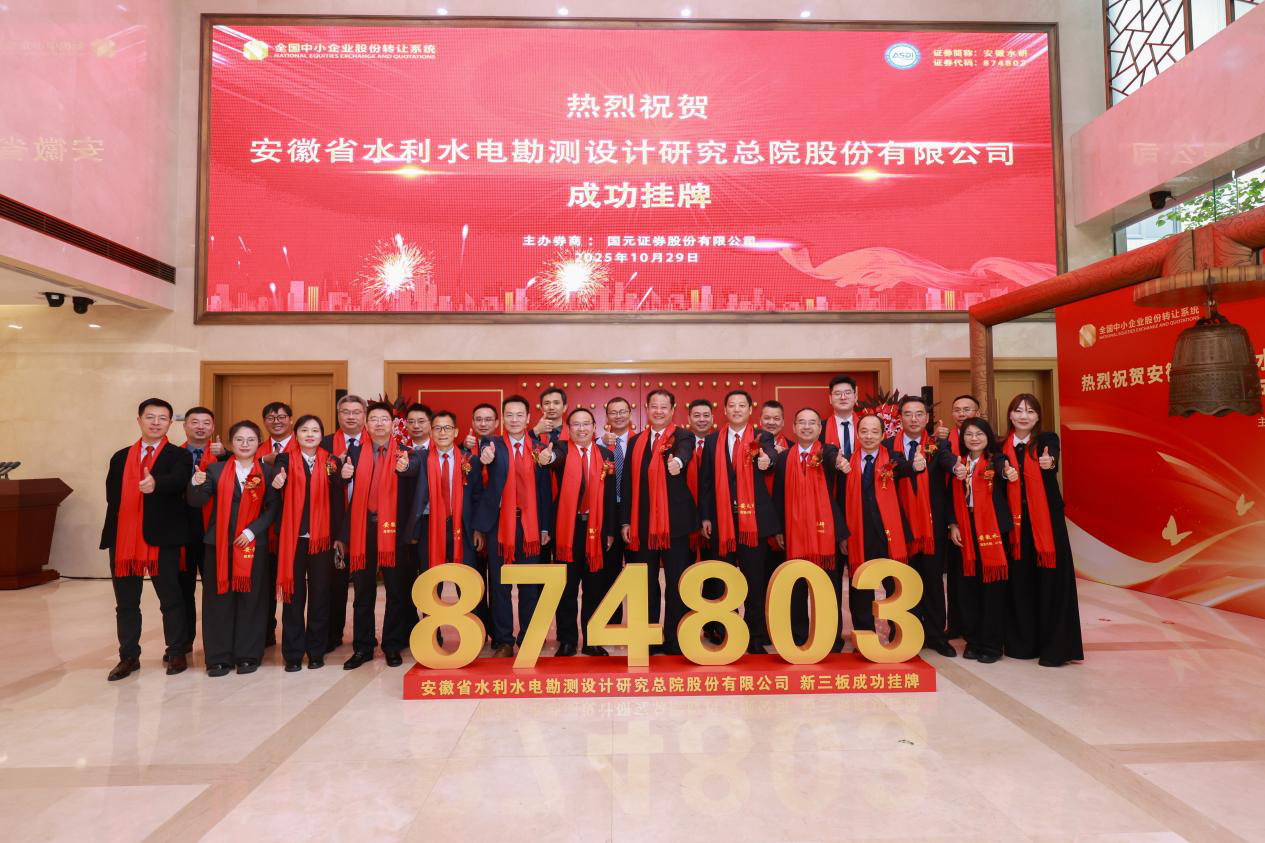 從佛子嶺水庫到淠史杭灌區(qū),從淮河上的 “三峽工程” ——臨淮崗洪水控制工程到安徽基礎(chǔ)設(shè)施 “一號工程” 引江濟淮工程,安徽水研數(shù)十年如一日,始終緊跟國家水利基礎(chǔ)設(shè)施建設(shè)與生態(tài)文明建設(shè)導向,長期服務(wù)安徽水利頂層規(guī)劃論證,深耕水利水電勘測設(shè)計領(lǐng)域,是區(qū)域水利建設(shè)的中堅力量。此次登陸新三板,安徽水研將借助全國股轉(zhuǎn)公司這一國家級平臺,進一步匯聚優(yōu)質(zhì)資源、激活發(fā)展新動能,在規(guī)范治理中提升核心競爭力,在資本運作中拓寬發(fā)展空間,深刻踐行 “節(jié)水優(yōu)先、空間均衡、系統(tǒng)治理、兩手發(fā)力” 的新時期治水思路,以資本市場為依托,書寫水利事業(yè)高質(zhì)量發(fā)展的新華章。